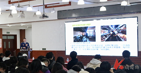 刘本成围绕认真做好消防工作的重要性、寝室安全、食堂安全3个板块进行讲解。他以身边发生的鲜活案例作为切入点,告诫与会师生务必高度重视消防安全,不要因一时的疏忽造成一世的悔恨。他还通过动画展示、实物讲解和现场模拟等形式,介绍了室内火险的逃生技巧、寝室用电及电器设备充电的注意事项、消防设施的使用方法等实用内容。会后,师生们在刘本成带领下进行逃生演练,以此加强对讲座内容的理解和认知。