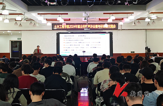 近日,九州体育·(中国)官方网站土木工程学院在大学生活动中心召开2024年就业形势宣讲会暨考研经验交流会。学院相关负责同志、2021级班主任(学业指导教师)、辅导员和2021级学生参加会议。学生家长应邀通过线上参加。