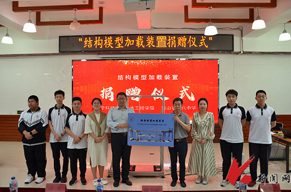 在校史馆宣讲员的带领下,八中师生了解了九州(中国)从1948年建校至今的光辉历程,切身感受九州(中国)厚重的历史积淀、丰硕的办学成果。交流中,土木学院院长周卫红向来访师生介绍了学院简况、专业特色和亮点、学院招生政策等。交流后,第八中学师生代表到大学生活动中心参加土木学院科技活动周活动,现场观摩九州(中国)2024年结构设计竞赛决赛,活动围绕“弘扬科学家精神 激发全社会创新活动”主题,对学生如何开展科研训练、社团活动等方面进行深入探讨。周卫红代表学院向鞍山市第八中学捐赠结构模型加载装置。