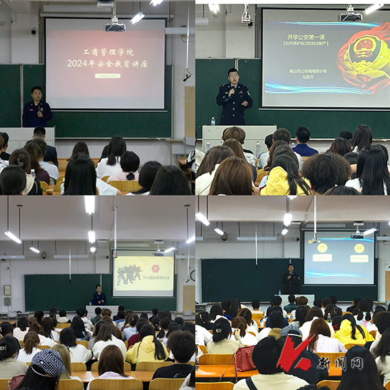 学院还邀请鞍山市铁东区钢城街消防救援站副站长吴文杰、鞍山市公安局高新公安分局千山派出所冯思齐进校园开展安全教育专题宣讲会。吴文杰结合校园火灾的案例,详细为学生代表们讲解火灾事故原因、防火相关知识、报火警的正确方法等消防安全知识,同时培训大家灭火器的操作步骤、消火栓与水带的使用方法以及火场逃生术。冯思齐为大家主讲了“开学公安第一课”,分享了预防财物被盗相关知识、预防电信诈骗的常用方法,提醒大家保持高度安全意识。