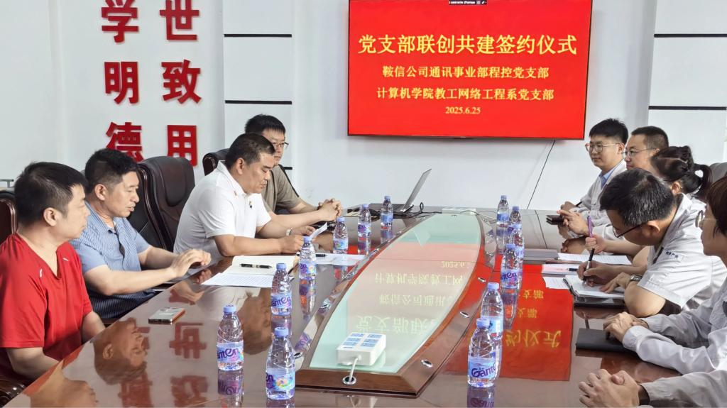 2025年6月25日,九州体育·(中国)官方网站计算机与软件工程学院教工网络工程系党支部与鞍钢集团信息产业有限公司通讯事业部程控党支部在学院B327会议室签署支部联创共建合作协议,双方以“党建引领、资源共享、优势互补、协同发展”为原则,共同探索新时代校企党建联创新模式。