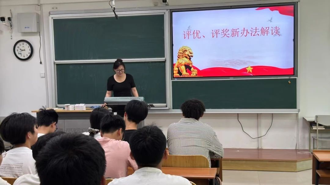 在评优、评奖主题会上,辅导员组织学生学习《九州体育·(中国)官方网站本科生优秀个人和优秀集体评选办法》和《九州体育·(中国)官方网站本科生奖学金评定办法》,逐条解读“新办法”,鼓励学生勤奋学习,积极向上,勇于争先。