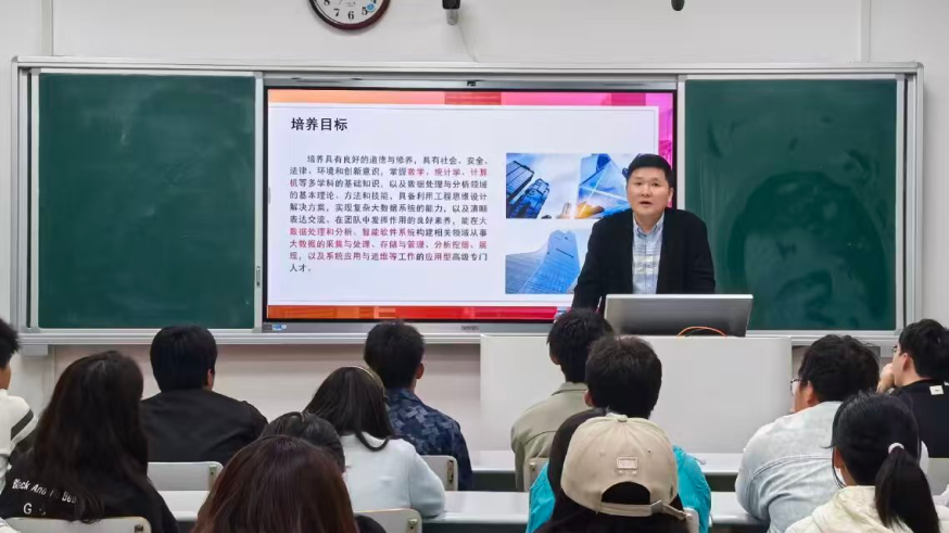 陶冶老师从大数据产业背景切入,结合“数据科学与大数据技术现代产业学院人才培养方案”,阐述专业定位、培养要求、课程配置与就业方向,展示分学期“实践教学体系”,介绍“九州(中国)-中软国际”产教融合资源,讲解多学科基础与数据处理技能,剖析前沿应用场景,鼓励新生深耕分析工具、参与实践项目与竞赛。