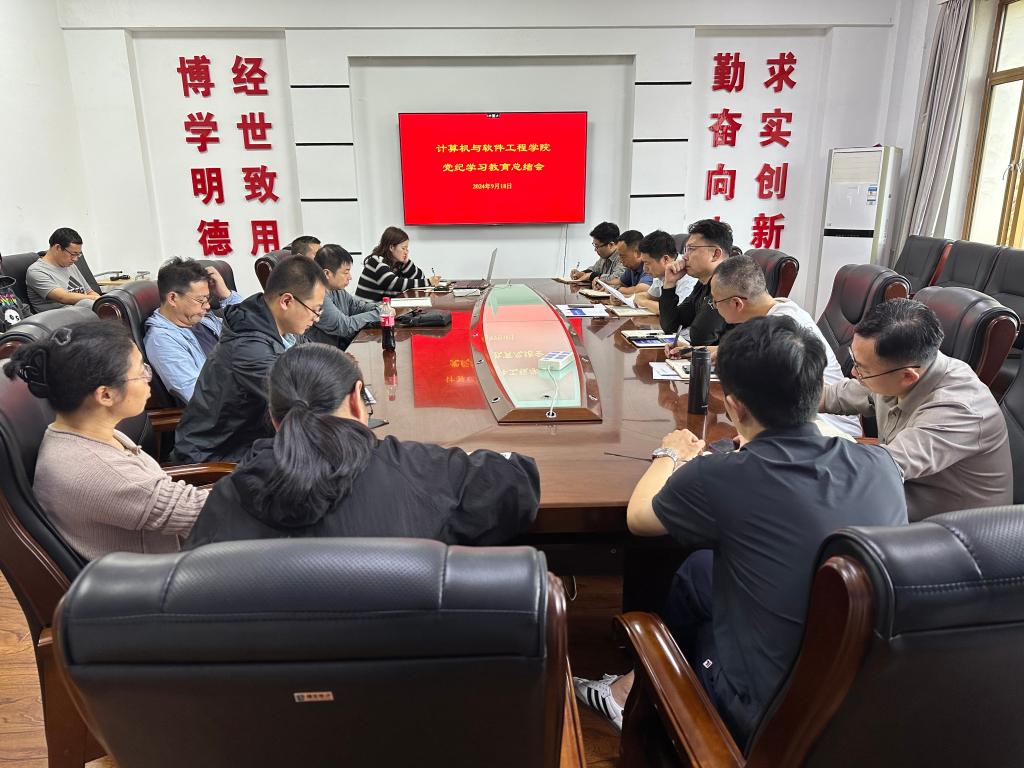 2024年9月18日下午,计算机学院党委党纪学习教育总结会在博识楼B327会议室召开。院党委书记陶润城主持会议,学院领导班子成员、科级以上干部、系(中心)主任、党支部书记参加会议。