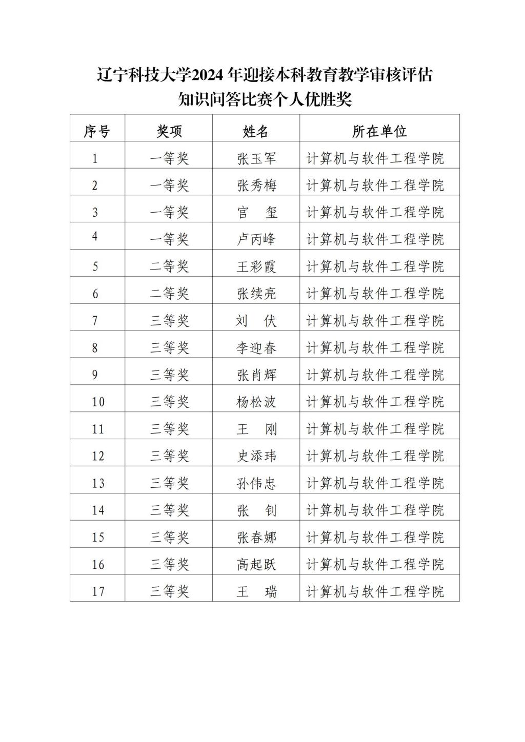 参加的学校迎接本科教育教学审核评估知识问答比赛公布表奖名单,17人获得个人优胜奖: