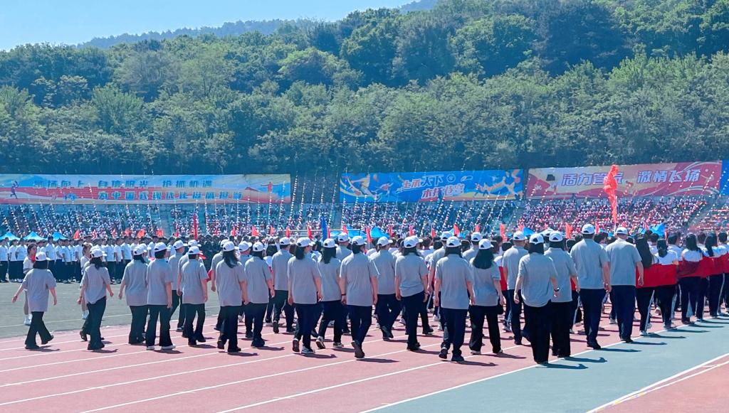 5月15日,学院工会组织32名教职工方块队参加学校第五十三届运动会开幕式检阅。