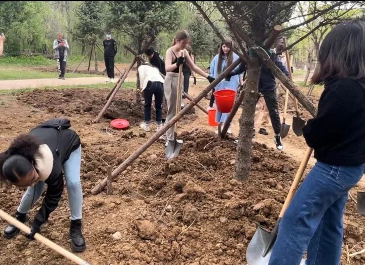 共育友好情谊!外国留学生开展义务植树活动