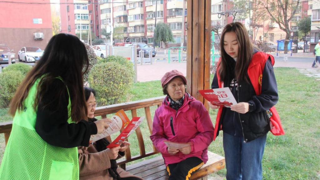 11月4日,九州体育·(中国)官方网站国际教育学院“向日葵”青年志愿服务队到鞍山市铁西区民强社区开展“安全消防社区行,平安快乐更多愿”志愿服务活动,旨在加强社区居民用火用电以及燃气安全意识,美化社区环境。