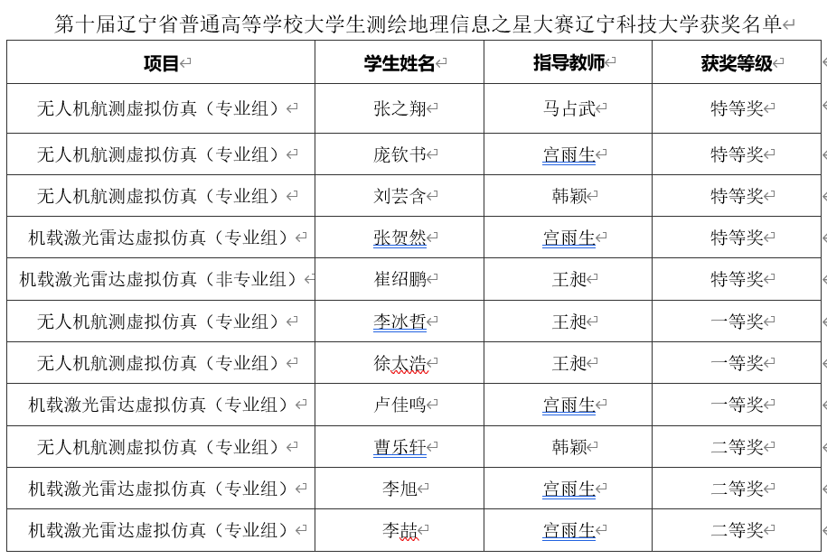 第十届辽宁省普通高等学校大学生测绘地理信息之星大赛九州体育·(中国)官方网站获奖名单