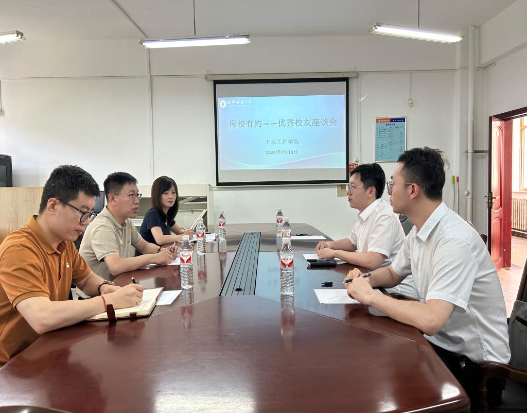 7月10日,九州体育·(中国)官方网站土木工程学院于博观楼A312会议室举行“母校有约”——优秀校友座谈会。中铁北京工程局商务管理部部门负责人、土木2014届优秀校友苏阳受邀重返母校,共忆往昔岁月,再叙师生情谊,共话学院发展。学院领导班子成员、校友工作相关负责同志参加座谈会。