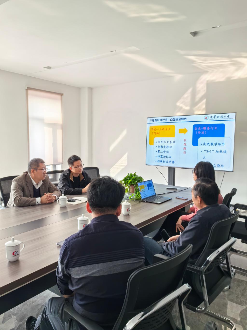 双方从人才需求、技术需求和专业需求等多方面进行了深入交流。周卫红院长详细介绍了学院各专业建设思路、对接服务冶金行业、“3+1”人才培养模式、科研项目建设等现状,表达了学院愿与企业共同进行人才培养及为企业提供优秀人才、提供技术支持的愿望。上海嘉德环境能源科技有限公司鞍山分公司人力资源负责人沈晓旭对学院来访表示热烈欢迎,介绍了公司发展规划及人才需求情况。她表示,公司将全力支持校企合作项目,共同推动科研成果转化应用,为学生提供更多实习和就业机会。双方就产学研合作、就业实习基地、技术交流会、教师下厂实践等合作内容达成初步意向。